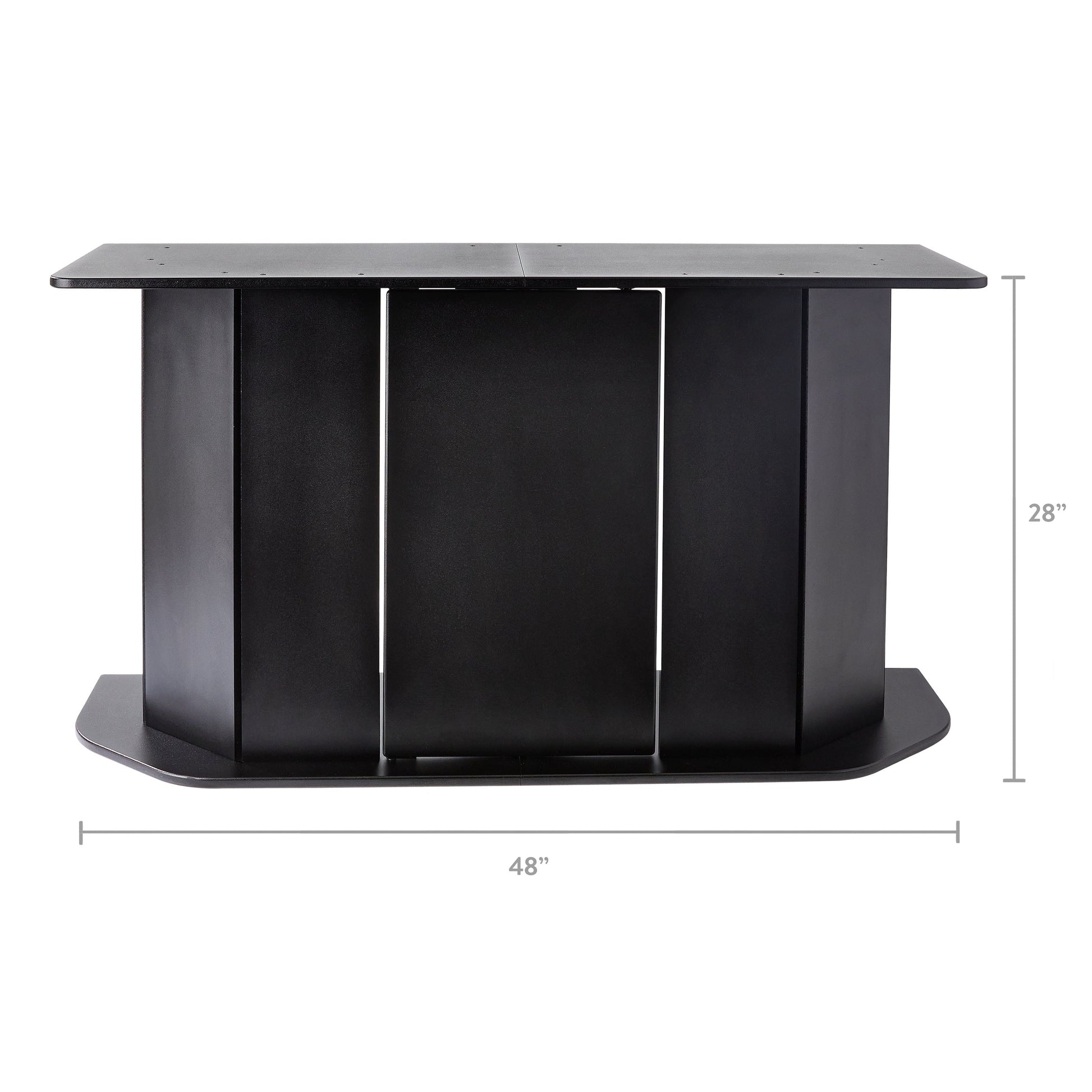 The finish and contemporary design compliment many different styles of home decor. The strong, solid top design of this stand supports every inch of your aquarium, and lets you use this aquatic furniture safely with a variety of tanks and other pet habitats. The front of the stand is fully covered to conceal pumps, filters or other accessories, with a center panel door for easy access. The back of the stand is open, letting you conveniently route chords or tubes from the aquarium inside the stand without cutting away panels.