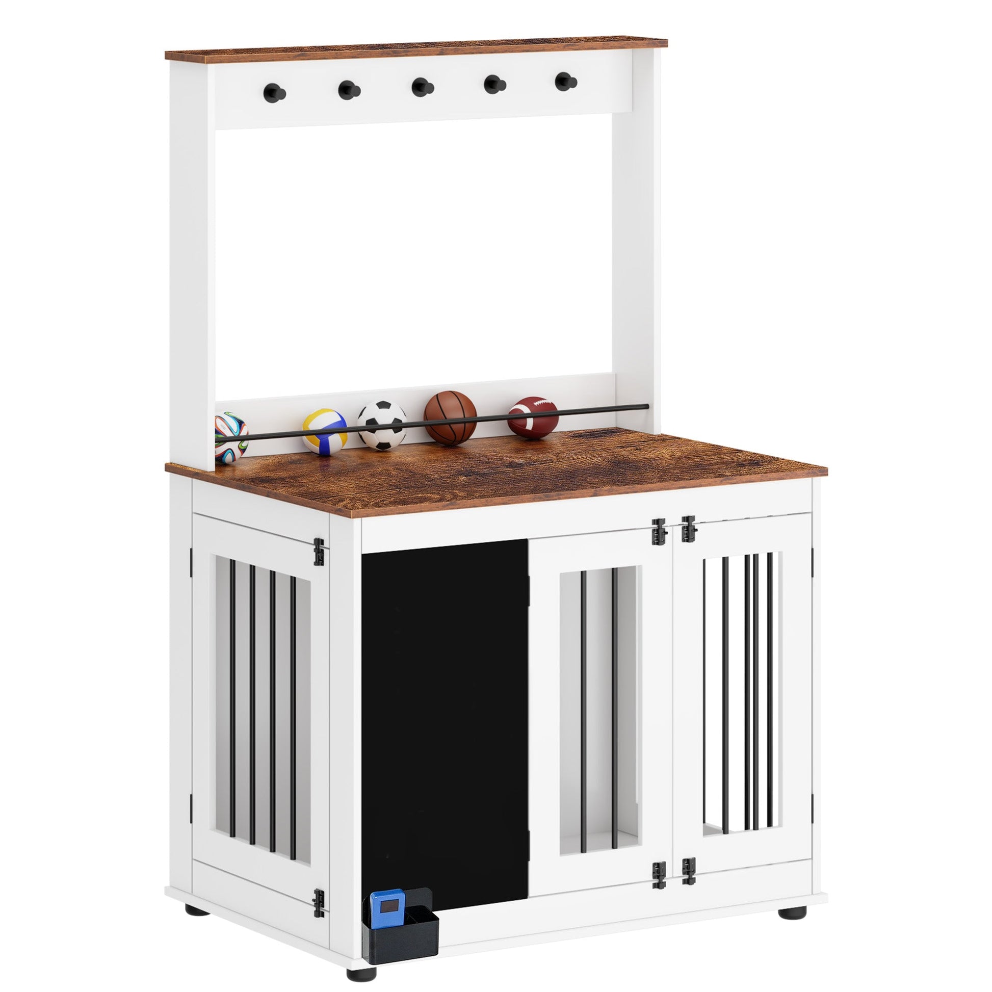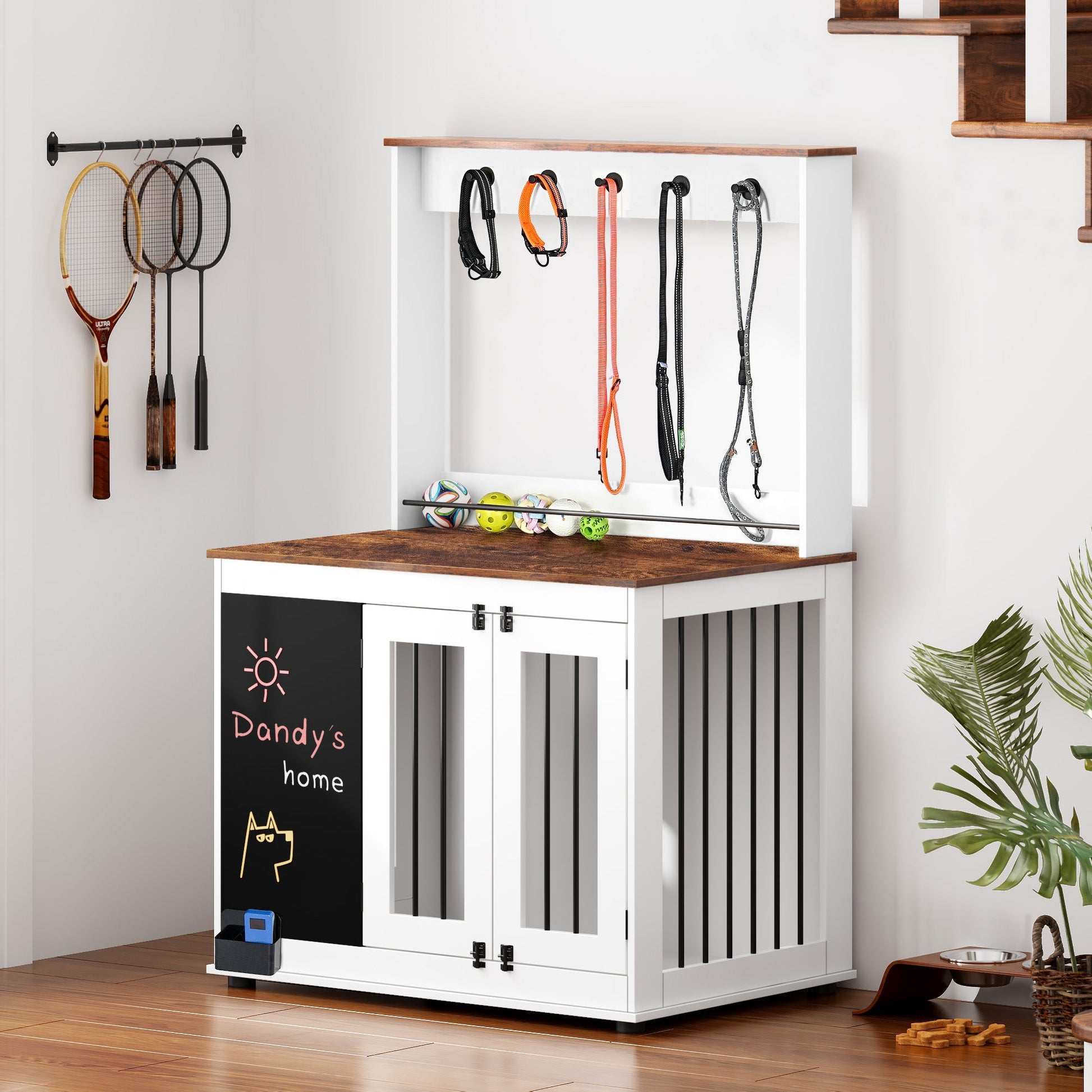 Dog crate,Graffiti dog cage, kennel with double doors, crate interior furniture, heavy wooden dog cage, large dog, white