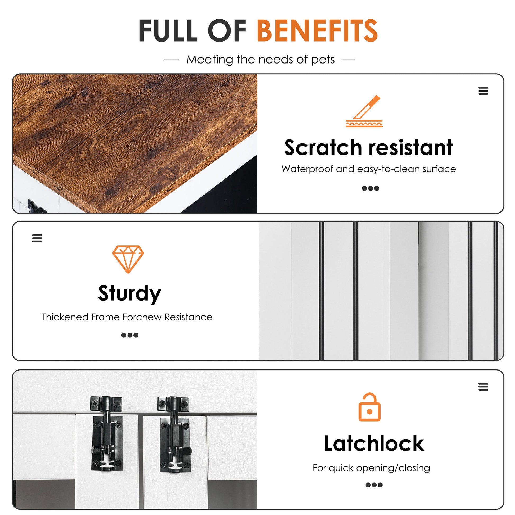 Furniture style design: pastoral style dog cage; The use of high-quality P2 grade particleboard can not only better decorate your home space, but also more healthy and environmentally friendly.