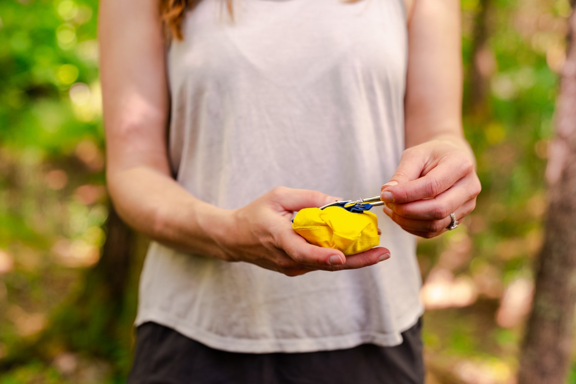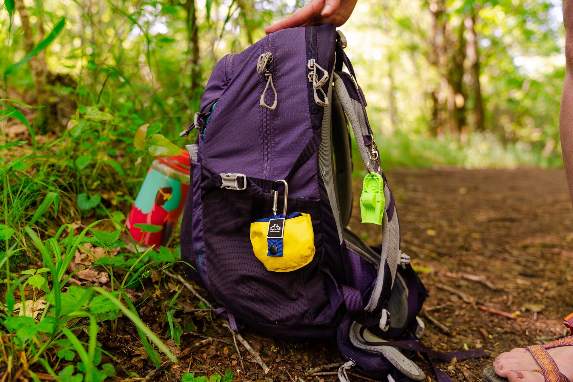 - Small carabiner to hook onto yours or your dog's pack