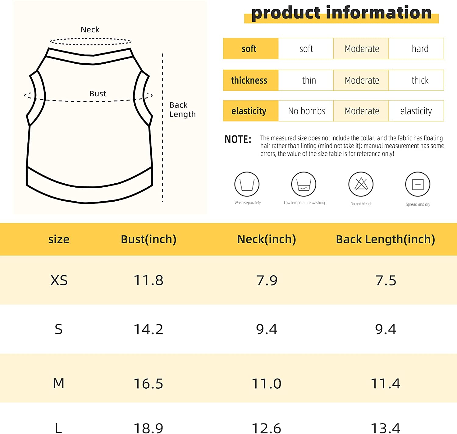 Dog Tank Top Cat Shirt Puppy Summer Shirt Pet Shirts Soft Breathable Sleeveless Vest Cute Dog Cotton Clothing only for Small Dogs and Cats Pet Clothes Apparel Costume Dog Clothes Pet Dog Accessories