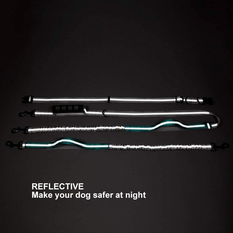 Hands-free adjustable waist belt - This dog leash has a hands-free adjustable waist belt. Free your hands and be free. And from the pain of leash burn. 2.5cm / 1in wide. The applicable waist range is 70-120cm / 27.5in-47in. A double D-ring is placed on the belt. You can quickly attach the leash hook to the most convenient D-ring.