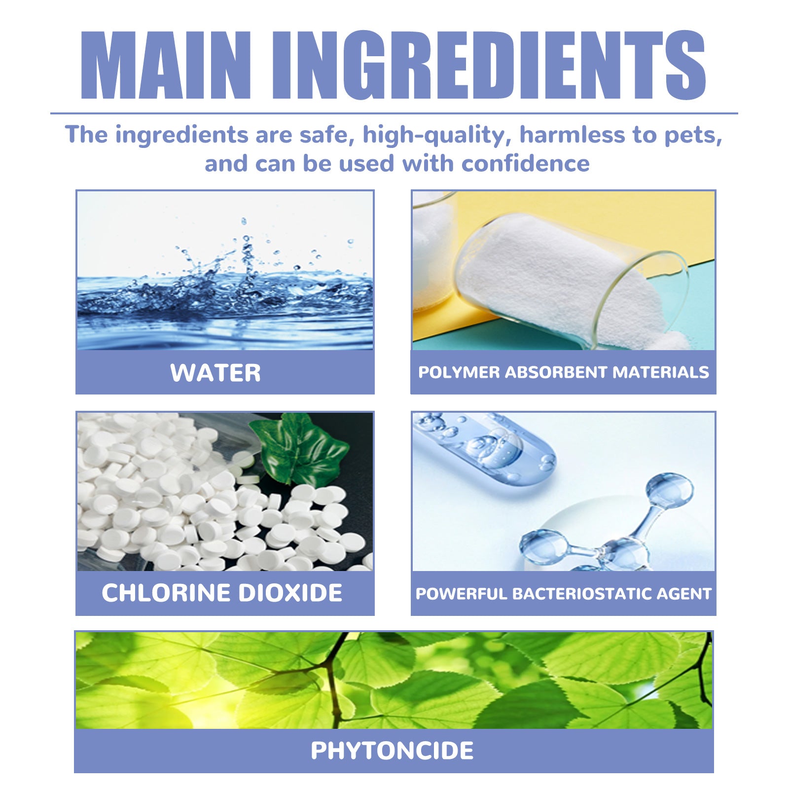 Our pet deodorant gel contains a high molecular absorbent material, chlorine dioxide. It can effectively remove pet odor, including urine, sweat, etc., keep the air around the pet fresh, the effect is lasting. Its use method is very simple: 1. Open the bottle cap, tear off the sealing film, and install the slow-release cap. 2. Put it in the use area. And can effectively remove odor, continuous release of aroma, keep the air fresh.