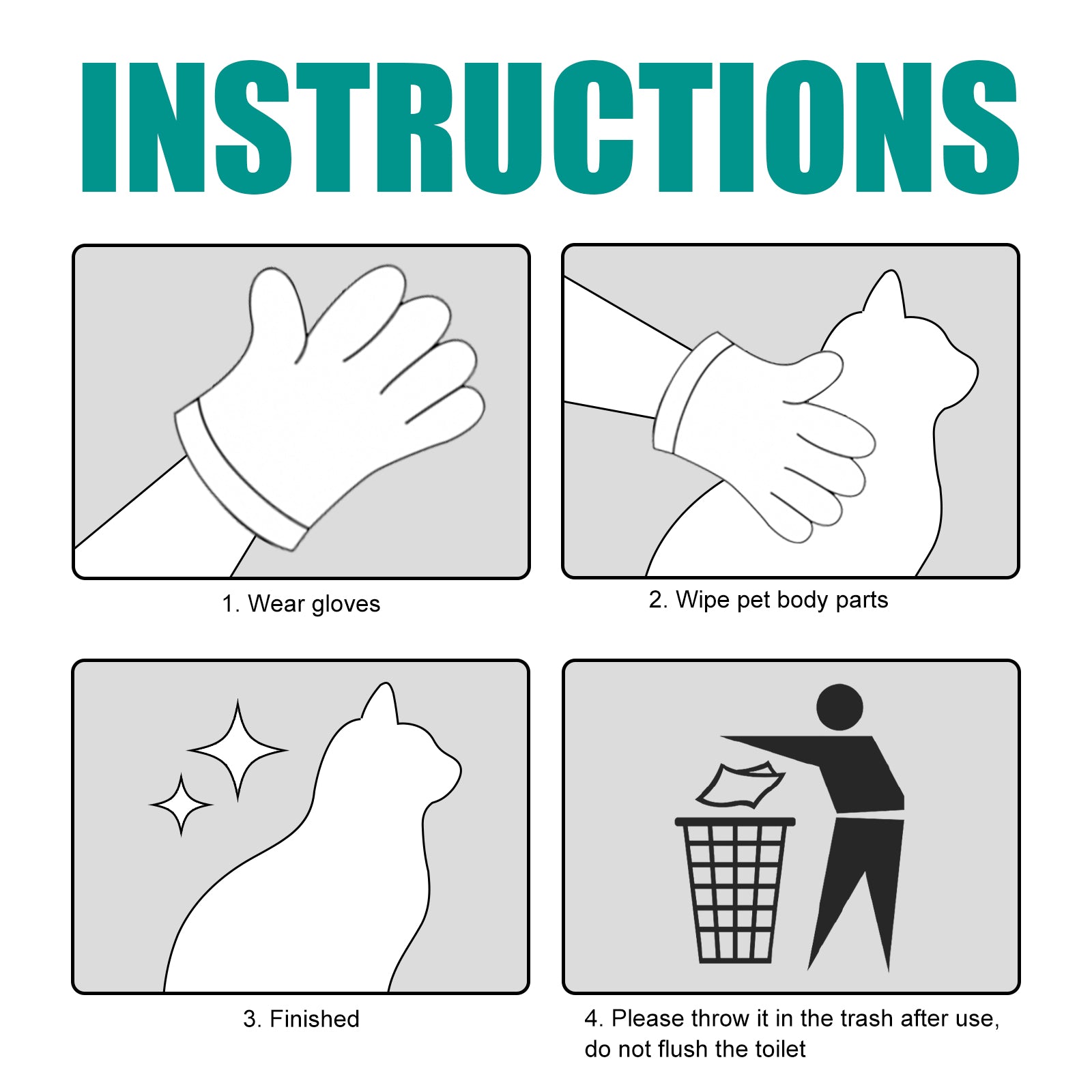 Our pet leave-in cleaning gloves contain non-woven fabrics. It soothes pet skin, reduces dryness and itchiness, and keeps it soft and shiny. Safe and effective for pets with sensitive skin. Its use method is very simple: 1. Wear gloves; 2. Wipe pet body parts; 3. Finished; 4. Throw it in the trash after use. Do not flush the toilet. And it uses a gentle cleaning formula that does not destroy the natural oils of your pet's hair. Fast drying, no residual moisture, keep pets fresh and comfortable.